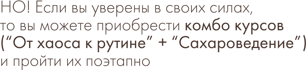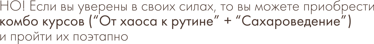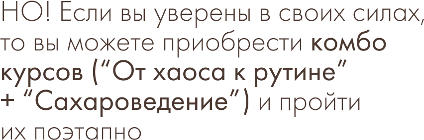 длительность курса "От хаоса к Рутине" 1 месяц, длительность курса "Сахароведение" 1 месяц